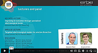 Webinar on DemandRecording from ESGE Days 2023: The keynote lecture was presented by Professor Repici on „Improving GI Outcomes through Specialized Electrosurgical Modes,“ followed by an impulse lecture from Professor Arnaud Lemmers (Belgium) on „Targeted Electrosurgical Modes for Precise Dissection.“ Professor Lemmers shared his settings for dissection using the preciseSECT mode, as well as for swiftCOAG®, softCOAG®, endoCUT®, dryCUT®, sprayCOAG and softCOAG® bipolar.
